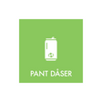 Dette er pantepiktogrammet fra den offisielle piktogramserien for avfallssortering av flasker og bokser med pant. Skiltet er trykt på sterk magnetisk folie med grønnt UV-blekk.