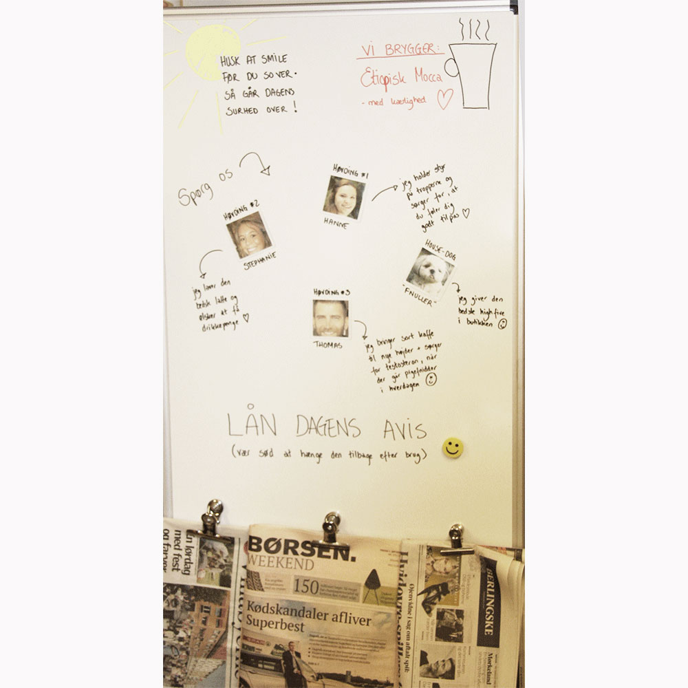 Magnetisk Bulldog klemme, som kan settes på whiteboard-tavlen eller en annen magnetisk flate.
