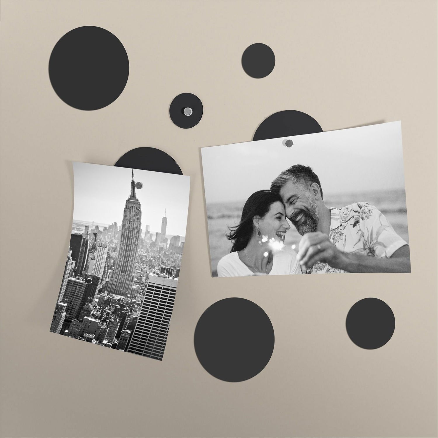 Element Flex-sirklene fra Trendform er små PVC-belagte metallplater som kan limes til veggen, et skap osv. Så lenge du har en flat overflate å feste dem til.