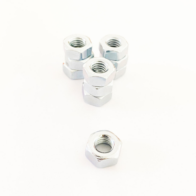 Pakke med 10 stk. stålmuttere med M6 gjenger.
