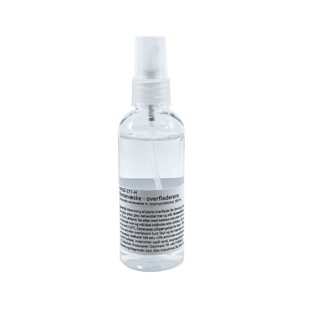 Passer til: Rengjøring av flate overflater før liming - for eksempel fliser, plexiglass, plast, glass, behandlet tre og stål. Påføring: Spray på overflaten i ca. 25 cm. avstand. Tørk etterpå med tørkepapir eller en tørr, lofri klut. Bruk i ventilerte områder og ikke inhaler eller drikk. Oppbevares unna direkte sollys ved 5-25 grader. Oppbevares utilgjengelig for barn. Råd: Bruk hansker hvis du har sart eller sensitiv hud. Skyll og tørk hendene etter kontakt med rengjøringsvæske. Innhold 100 ml.: <5 % anioniske overflateaktive stoffer (Sodium Laureth Sulfate). Inneholder også vann, isopropylalkohol og ammoniakk. pH ca. 10,5 (alkalisk). Laget i Danmark.
